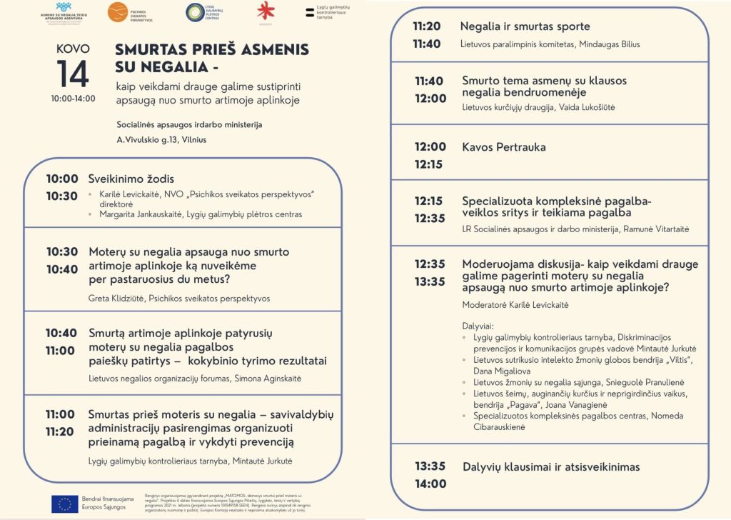Asmens su negalia teisių apsaugos agentūra kviečia susitikti renginyje „Smurtas prieš asmenis su negalia – kaip veikdami drauge galime sustiprinti apsaugą nuo smurto artimoje aplinkoje”.
