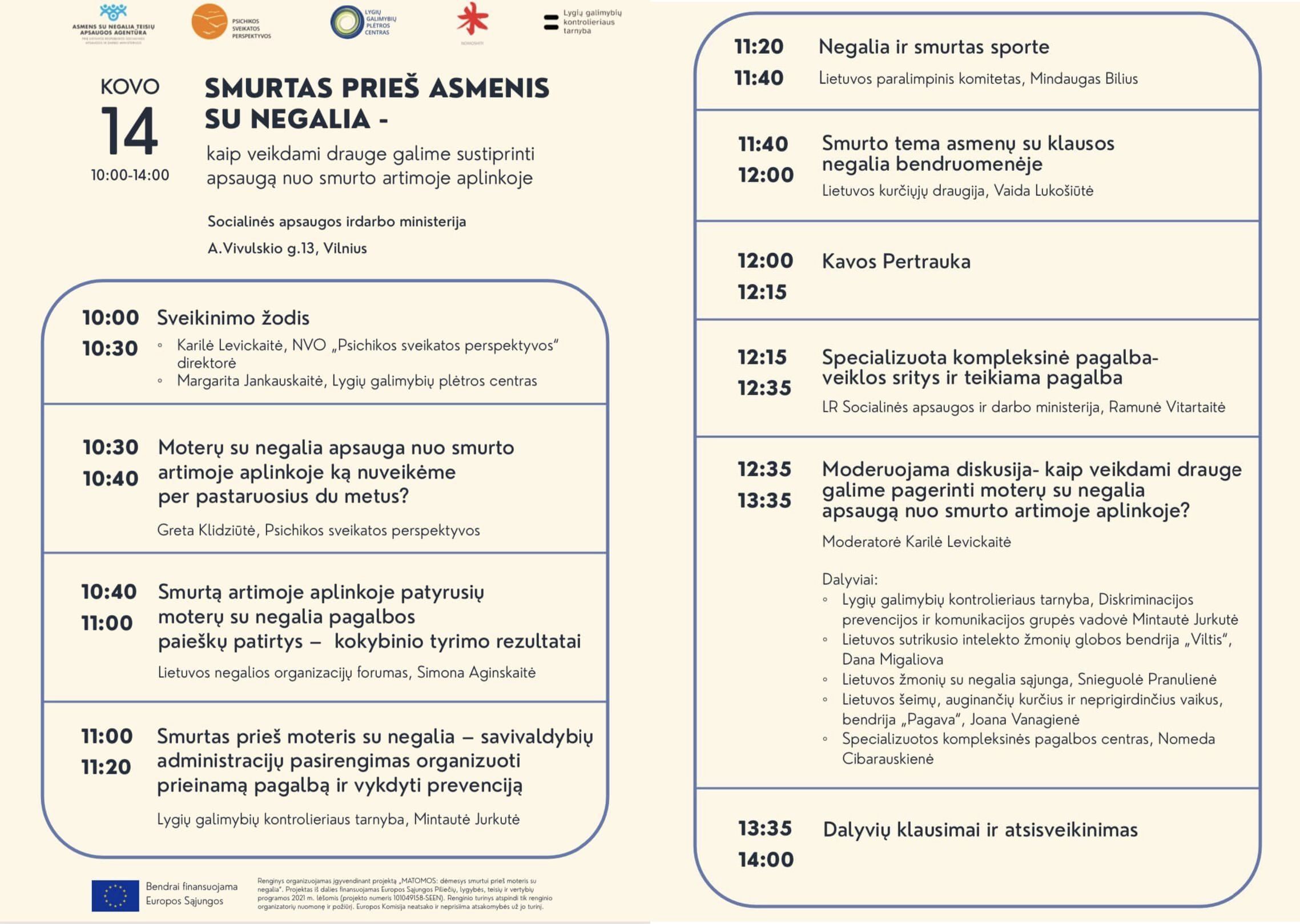 Renginys skirtas skatinti bendradarbiavimą tarp negalios lauke veikiančių organizacijų, daugiau sužinoti apie viena kitos veikimo sritis ir ieškoti būdų, kaip veikdami drauge galime stiprinti apsaugą nuo smurto artimoje aplinkoje, taip pat renginyje bus pristatytos Specializuotos kompleksinės pagalbos centrų veikla.